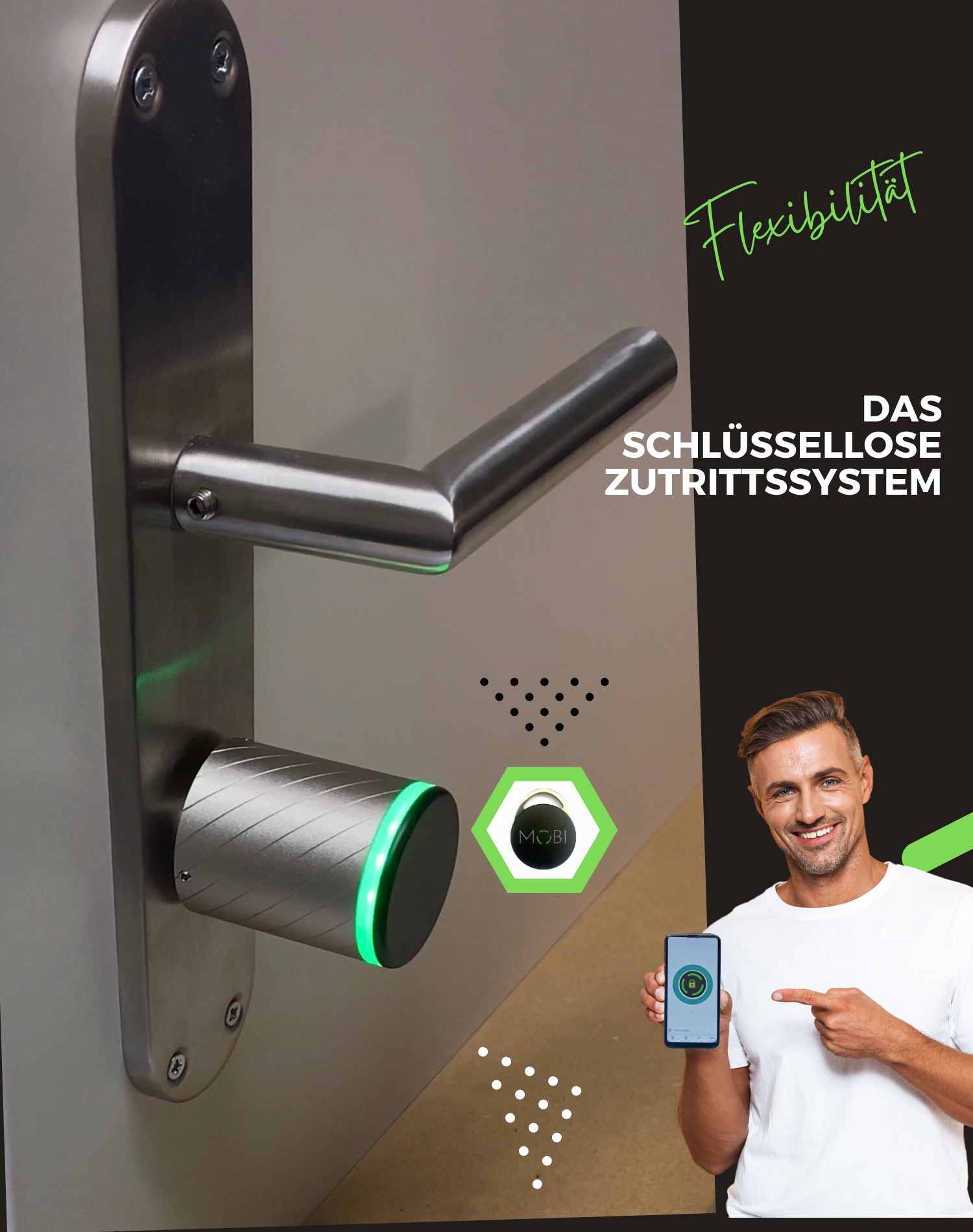 Today, the smartphone integrates many objects of everyday life. In addition to the telephone, it is not just a watch, a calculator and, more recently, also an apartment or house key. This is made possible by wireless data transmission. Whether via Bluetooth connection when you are standing directly in front of the door or remotely via the mobile network: you can open and close the MOBI Smart Lock at any time with your smartphone. Hardly anyone likes to leave the house without a smartphone - but they do without a bunch of annoying keys.